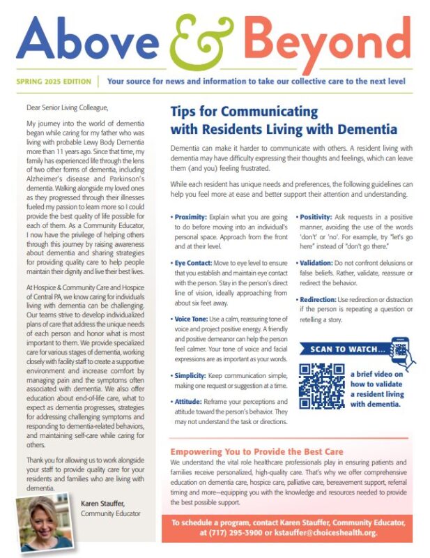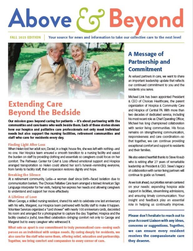 Hospice & Community Care’s current issues of Above & Beyond, the organization’s quarterly provider newsletter, is available by clicking below.